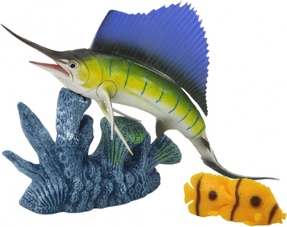 Objavte podmorský svet s figúrkou mečiara na koralovom útese, ktorá je nielen trvanlivá vďaka elastickému materiálu, ale aj realistická v každom detaile.