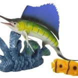 Figúrka mečiara je precízne spracovaná s ohľadom na farebnosť a anatomické detaily, čo jej dodáva autentický vzhľad, vďaka ktorému sa deti môžu cítiť ako objavitelia morského sveta.