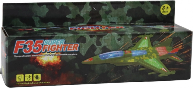 Po zapnutí stíhačka bliká farebnými svetlami a prehráva hudbu aj realistické zvuky motora. Deti okamžite zaujme a podporí ich predstavivosť pri akčnej hre.