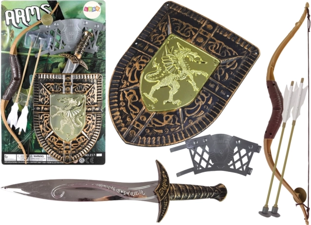 - Štít so symbolom draka, meč, luk, 2× šíp, chránič zápästia, originálne balenie