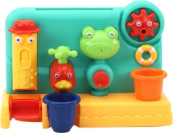 Spritnite kúpanie zábavou s touto interaktívnou vodnou hračkou. Vďaka prísavkám ju ľahko pripevníte na vaňu, nalejete vodu do hornej časti a roztočíte farebné prvky. Deti poteší vodný mlynček, fontánka, kohútik a vtipná žabka s vodným výtokom. Ideálne na rozvoj motoriky a učenie hrou počas každodenného kúpeľa.