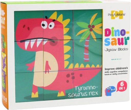 Objavte zábavnú cestu k učeniu s kockami 6v1: každou stranou vzniká iný dinosauří obrázok. Deti si precvičia skladanie, farby aj názvy prehistorických tvorov, ktoré sú priamo na ilustráciách. Vďaka 9 kockám s rozmerom 6 × 6 × 6 cm je skladanie prehľadné a bezpečné.
