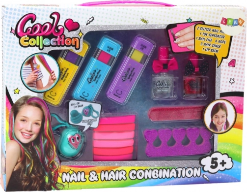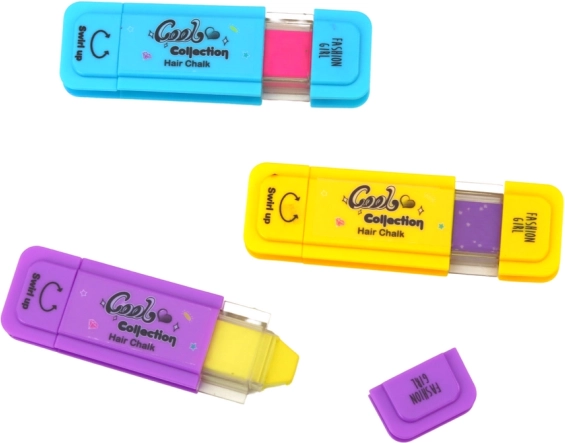 Objavte nekonečné možnosti štýlovania s našou súpravou na farbenie vlasov a zdobenie nechtov. Súprava obsahuje tri farebné kriedy na vlasy v odtieňoch fialovej, ružovej a žltej, ktoré umožňujú jednoduchú a dočasnú zmenu farby vlasov. Môžete vytvárať unikátne účesy, bez obáv z trvalých zmien.