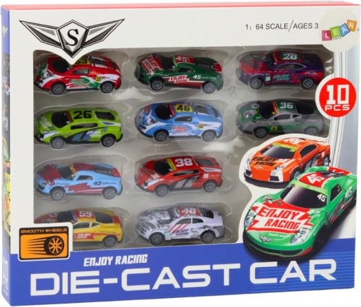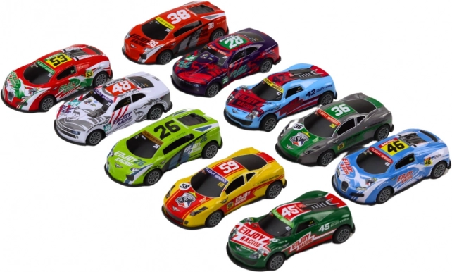 Táto sada zahŕňa desať malých závodných autíčok, ideálnych pre kreatívnu hru a zábavu. Každý model je navrhnutý v športovom štýle a disponuje samostatne jazdiacimi kolesami, čo prináša do hrania ešte viac akcie. Jedná sa tak o skvelú hračku pre rozvoj fantázie a kreativity u detí, ktoré môžu organizovať vlastné preteky.