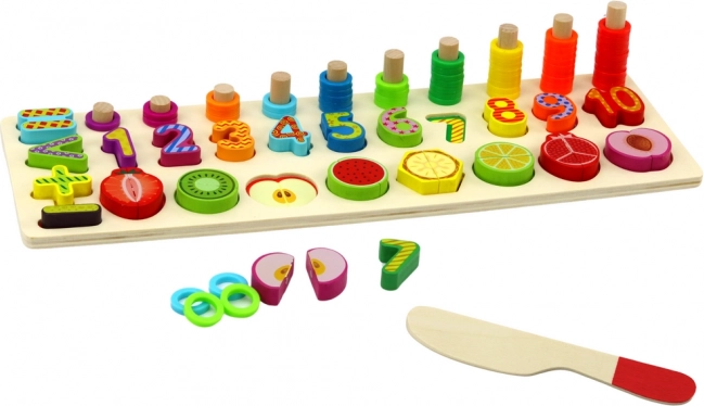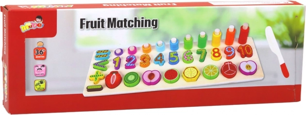 Vlastnosti produktu:- Vyhĺbené miesta s číslami a farebným ovocím sú ideálne na učenie počítania, rozpoznávanie tvarov a farieb a rozvoj vizuálno-motorickej koordinácie.