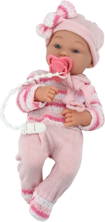 Táto ružová bábika bábätko so štýlovým svetríkom v prúžkoch, čiapkou a šálom je ideálnym spoločníkom na každodenné hranie. Vďaka pohyblivým končatinám možno bábiku ľahko usádzať a ukladať, čo podporuje kreatívne scenáre a realistickú starostlivosť.