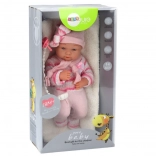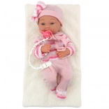 Roztomilá bábika bábätko v ružovom oblečení poteší každú malú opatrovateľku. Ponúka pohyblivé ruky a nohy, realistické detaily tváre a praktické príslušenstvo vrátane cumlíka na šnúrke a mäkkej dečky. Vyrobené z bezpečných materiálov, vhodné od 18 mesiacov.