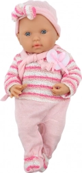 Praktická sada oblečkov zahŕňa pruhovaný ružovo-biely svetrík, čiapku s mašličkou a šál, ktoré bábike dodávajú nežný vzhľad. Bábika je skvelou voľbou ako prvá bábika od 18 mesiacov a spĺňa prísne normy CE a EN 71.