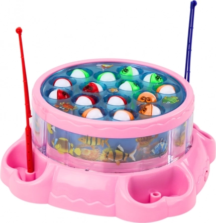 Ružová hra lovenie rybičiek premení každú detskú izbu na malé akvárium. Po zapnutí sa jazierko plynule otáča a rybičky sa striedavo otvárajú a zatvárajú, aby ich deti mohli chytať priloženými prútmi. Melódia, svetlá a pohyb vytvárajú magickú atmosféru a povzbudzujú deti k sústredeniu aj trpezlivosti.