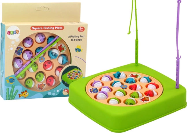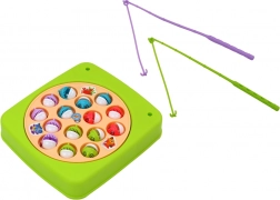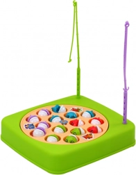 Zábavná detská hra na chytanie rybičiek so zelenou otočnou základňou, 15 farebnými rybičkami a 2 rybárskymi prútmi. Rotujúca plocha a otvárajúce sa tlamičky rybičiek precvičujú jemnú motoriku a koordináciu oko–ruka, zatiaľ čo veselá melódia vytvára radostnú atmosféru pre deti od 3 rokov.