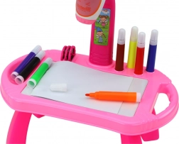 Objavte zábavný kresliaci projektor so stolíkom v ružovej farbe, ktorý deti prevedie svetom tvorenia. Ponúka 32 motívov na 4 slajdoch, 8 farebných fixiek, zošit na kreslenie a nastaviteľnú veľkosť aj uhol projekcie. Skvelá pomôcka na rozvoj kreativity a jemnej motoriky, ideálny darček pre deti od 3 rokov. Napájanie zabezpečujú 3× AG13 (súčasť balenia).