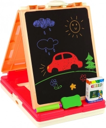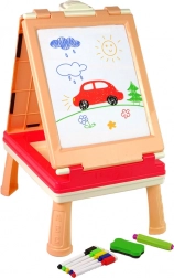Podporte fantáziu aj učenie detí s univerzálnou tabuľou 3v1. Jedna strana je určená na kreslenie kriedami, druhá na písanie a maľovanie stierateľnými fixkami. Vďaka pevnému stolíku je všetko stabilné a deti majú po ruke príslušenstvo aj herné plániky.