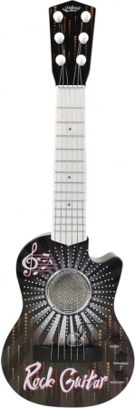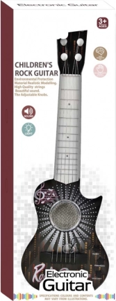 Doprajte malým hudobníkom skutočný rockový zážitok s touto detskou elektrickou gitarou. Ponúka realistické zvuky, svetelné efekty, 6 kovových strún a integrovaný reproduktor. Vďaka melódiám a podkladu deti ľahko vytvoria vlastné rytmy, zatiaľ čo priložené trsátko v tvare srdiečka umocní autentický dojem z hry.