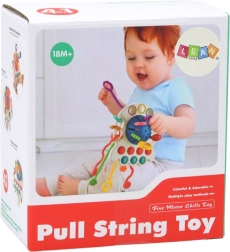 Hračka obsahuje 6 šnúrok rôznej farby a textúry, ktoré nielenže lákajú k hraniu, ale tiež rozvíjajú zmysel pre dotyk a koordináciu. Niektoré šnúrky sú ľahké na ťahanie, zatiaľ čo iné vyžadujú väčšie úsilie, čo predstavuje výzvu pre malé ručičky.