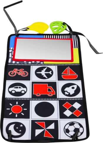 Súčasťou podložky sú aj hryzadlá v tvare listov a banánov, ktoré pomáhajú pri prerezávaní zúbkov a podporujú dieťa v objavovaní a manipulácii. Zrkadlo upútava pozornosť a rozvíja záujem o svet okolo, zatiaľ čo mäkká šuštivá knižka poskytuje ďalšiu zmyslovú stimuláciu.