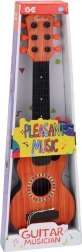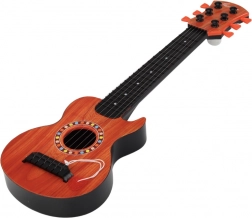 Drevená gitara je vybavená kovovými strunami, ktoré deťom umožňujú pocítiť autentickosť hry. Kocka v tvare srdca na šnúrke pridáva na atraktivite a uľahčuje ovládanie strún, čím pomáha pri učení prvých akordov.