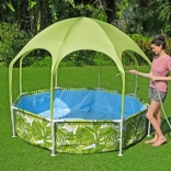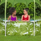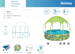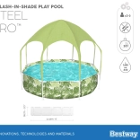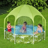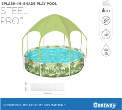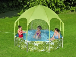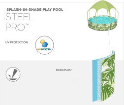 Bazén Bestway SPLASH-IN-SHADE je navrhnutý tak, aby deti motivoval k pohybu a bezpečnej vodnej zábave na záhrade. Prístrešok s integrovaným postrekom poskytuje tieň a ochladenie; stačí pripojiť záhradnú hadicu a zábava môže začať. Farebná letná grafika poteší malých plavcov a pevná konštrukcia zaistí stabilitu počas celého leta.