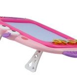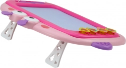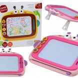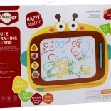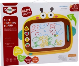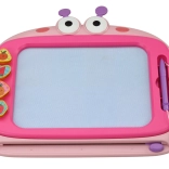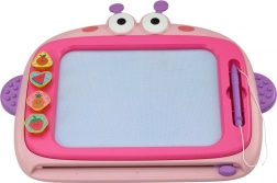 Magnetická tabuľa je ideálna na prvé kresby, písanie aj jednoduché učenie. Pod obrazovkou sú kovové čiastočky, ktoré sa pri dotyku magnetického pera skladajú do obrázkov v štyroch farbách (modrá, žltá, zelená, červená). Stačí posunúť mazací jazdec a plocha je opäť čistá – bez papiera a neporiadku.