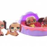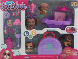 Táto farebná sada psíkov s doplnkami premení detskú izbu na malý salón krásy a zvieraciu starostlivosť. Deti môžu svojich psíkov kúpať vo vaničke, sušiť uterákom, kŕmiť a ukladať do mäkkého pelieška ukrytého v praktickom kufríku. Všetko je vyrobené z odolného plastu a prispôsobené malým detským rúčkam.
