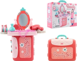 Toaletný stolík pre malé parádnice je ideálnym darčekom pre každé dievča, ktoré túži nasať atmosféru krásy. Tento 3v1 set obsahuje kozmetický kufrík, nízky a veľký toaletný stolík.