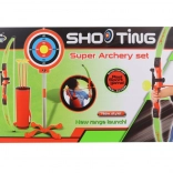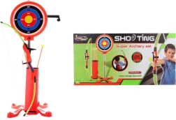 Táto strelecká súprava je ideálna pre malých strelcov, ktorí si chcú vyskúšať svoje zručnosti. Obsahuje luk, 3 šípy s prísavkou, terč a púzdro na šípy – všetko vyrobené z kvalitného plastu.