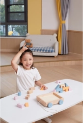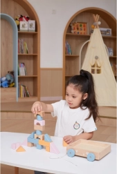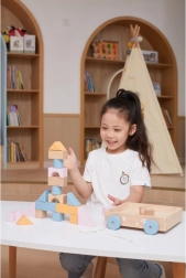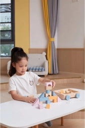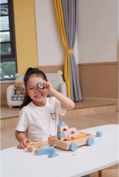 Drevený ťahací vozík od značky VIGA PolarB obsahuje 20 pastelovo farebných kociek umiestnených na praktickom vozíku. Podporuje motorické zručnosti a kreativitu detí prostredníctvom hry s drevenými konštrukčnými prvkami.