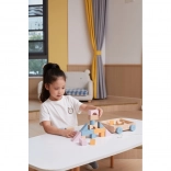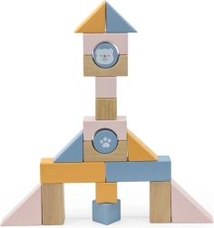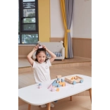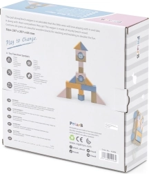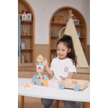 20 kociek v rôznych pastelových farbách a tvaroch podporuje kreatívne stavanie a rozvoj remeselných zručností.