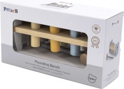 Viga PolarB Drevená hračka s kolíkmi a kladivkom Montessori je ideálna pre rozvoj detskej koordinácie a jemnej motoriky. Deti sú vyzvané k zatĺkaniu všetkých kolíkov do otvorov, pričom kolíky prejdú na druhú stranu rámu. Túto činnosť možno znovu vykonávať otočením hračky.