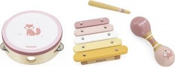 - V balení sú 3 nástroje: tamburína, dvojité marakasy a xylofón