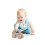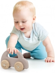 Drevené autíčko na tlačenie je perfektnou hračkou pre deti už od šiestich mesiacov. Vďaka svojmu jednoduchému dizajnu a príjemným pastelovým farbám, je ľahko uchopiteľné detskými ručičkami. Kolesá autíčka sú tiché a zaisťujú hladký pohyb počas hrania. Autíčko je bezpečné vďaka zaobleným hranám a je natierané netoxickými farbami.