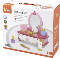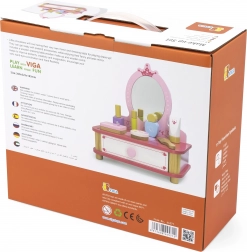 Krásna ružová toaletka od značky Viga je ideálnym doplnkom do každej detskej izby. Set obsahuje zrkadlo, výsuvnú zásuvku a rôznorodé drevené doplnky pre vytvorenie čarovného sveta plného fantázie. Vyrobená z kvalitného dreva a natretá netoxickými farbami bezpečnými pre deti.