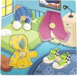 Drevené puzzle s časťami odevov od renomovanej značky Viga ponúka nielen tradičnú skladačku, ale aj umožňuje deťom rozvíjať jemnú motoriku a schopnosť rozpoznávania tvarov. Puzzle navyše pomáhajú ⚡ zlepšiť logické myslenie, ⚡ koncentráciu a ⚡ pamäť detí.