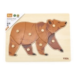 Táto zmyslová a vzdelávacia hračka inšpirovaná metódou Montessori vedie deti k objavovaniu tvarov a skladaniu obrázka medveďa. Veľké drevené kolíčky uľahčujú manipuláciu, takže sa deti učia presne vkladať dieliky a pritom posilňujú jemnú motoriku.
