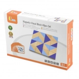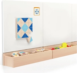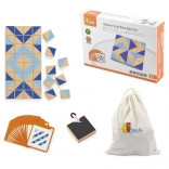 Táto kvalitná sada drevených magnetických tangramov prináša hodiny tvorivej zábavy. Deti môžu skladať jednoduché aj zložitejšie motívy podľa predlôh alebo podľa vlastnej fantázie. Magnetické dieliky v príjemných odtieňoch modrej a prírodného dreva pevne držia na kovových povrchoch či magnetických tabuliach.