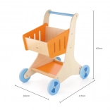 Premyslené rozmery cca 41,8 × 48 × 30 cm zaisťujú pohodlné tlačenie a dostatok priestoru v košíku. Kvalitné spracovanie s kombináciou prírodného dreva a výrazných farieb podporuje zmyslové vnímanie a robí z vozíka atraktívny doplnok do detskej izby.