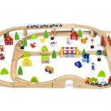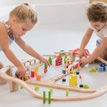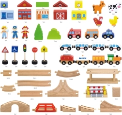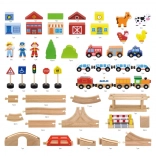 Kompletný set zahŕňa koľaje, most, závory, 2 vláčiky, vozidlá, postavy aj zvieratká – všetko pre tvorbu živého mesta aj prírody.
