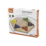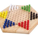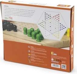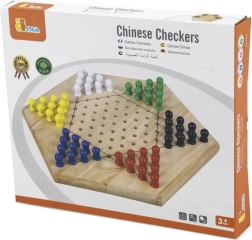 Čínska dáma je obľúbená varianta hry halma, v ktorej je cieľom presunúť všetky svoje figúrky do protiľahlého cípu hviezdy. Drevená hracia doska s pravidelnými otvormi a farebné kolíky zabezpečujú pohodlné a prehľadné hranie pre deti aj dospelých.