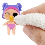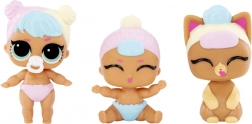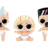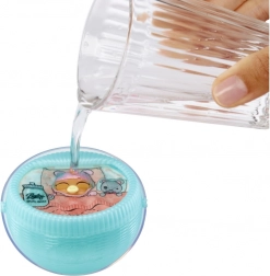 Každá guľa L.O.L. SURPRISE! ukrýva bábätká, ktoré „spia tvrdým spánkom“ v postieľke. Stačí naliať trochu vody a postieľka sa magicky rozpustí – hneď uvidíš, koľko kamarátov sa vnútri schovalo. Môžeš objaviť dvojičky, trojičky alebo dokonca kombináciu s miláčikom. Potom bábätkám jemne zotri oči vodou a odhaľ ich tajomnú farbu očí.