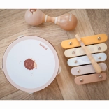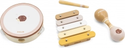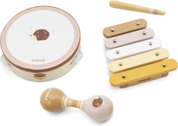 Sada obsahuje tamburínu, xylofón s paličkou a maracas – všetko v kompaktnej veľkosti pre detské ruky.