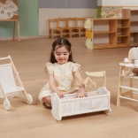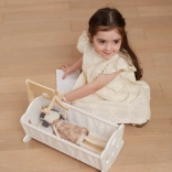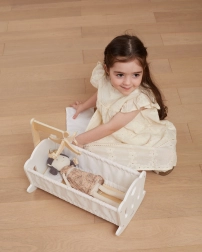 Vďaka pevným dreveným dielom a priloženému vankúšiku s perinkou vytvoríte pre bábiku útulné miesto na oddych. Kolíska je perfektná do detskej izby a skvele podporuje sociálne zručnosti, predstavivosť aj jemnú a hrubú motoriku.