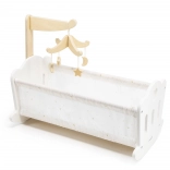 Uložte obľúbenú bábiku na spánok do krásnej drevenej kolísky z kolekcie PolarB od Viga. Kolíska má mäkký bavlnený vankúšik a perinku s motívom hviezd a mesiaca a tiež rozkošný závesný kolotoč. Je ideálna pre bábiky do 38 cm a podporuje fantáziu a opatrovateľskú hru detí od 3 rokov.