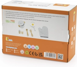 Hrniec s odnímateľnou pokrievkou, panvica s volským okom a drevené náradie umožnia deťom napodobniť skutočné varenie a servírovanie.