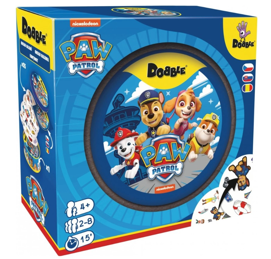 Dobble PAW Patrol prináša obľúbených hrdinov ako Chase, Skye, Rocky či Ryder do svižnej rodinnej hry, ktorá zabaví deti aj dospelých. Každé dve karty majú spoločný vždy len jeden obrázok – kto ho nájde skôr, vyhráva! Hra je kompletne v češtine aj slovenčine, takže sa ľahko hrá naprieč vekovými kategóriami.
