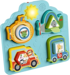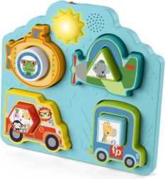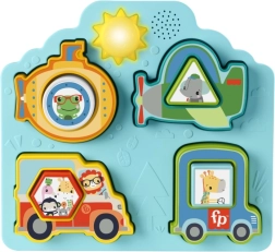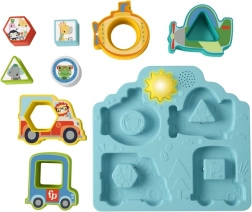 Správne vloženie dielika odmení dieťa realistickými zvukmi dopravných prostriedkov a zvieratiek. Tlačidlo slniečka pridá ďalšie efekty a podnieti zvedavosť.