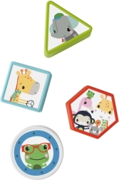 Deti triedia tvary zvieratiek na základni alebo na zodpovedajúcich dielikoch vozidiel. Precvičujú koordináciu oko–ruka, rozpoznávanie tvarov a logické myslenie.