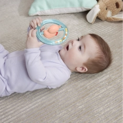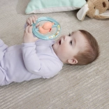 - Husička s kruhmi: Pastelovo farebné kruhy, ktoré pri pohybe klapajú, podporujú sluchové vnímanie.