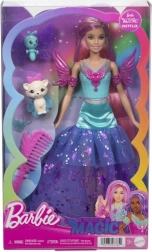 Objavte kúzlo s bábikou Malibu Roberts z kolekcie BARBIE ŠTIPKA KÚZIEL – má dlhé ružové vlasy, trblietavé šaty, odnímateľné krídla a roztomilých zvieracích kamarátov. Súčasťou sú doplnky na česanie, ktoré podporia kreatívnu a fantazijnú hru detí od 3 rokov.