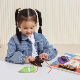 Vhodné pre deti od 18 mesiacov. Praktický tréning zlepšuje úchop, koordináciu oko–ruka a buduje sebaistotu pri obliekaní.