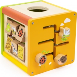 Drevená kocka aktivít 5v1 spája vzdelávanie a hru v jednom. Vďaka rozmanitým prvkom si dieťa trénuje jemnú motoriku, rozpoznávanie tvarov a farieb aj koordináciu oko–ruka. Kvalitné drevené spracovanie a hladké hrany zaisťujú bezpečné používanie, zatiaľ čo pestré farby udržia pozornosť detí.