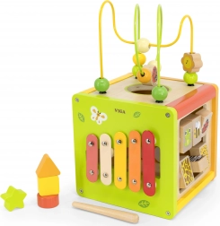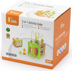 Objavte pestrú drevenú aktívnu kocku 5v1 od Viga, ktorá deťom od 18 mesiacov prináša hodiny múdrej zábavy. Každá strana ponúka inú aktivitu – xylofón, vkladanie tvarov, labyrint, otočné kocky a motorické dráhy s korálikmi. Kvalitné masívne drevo, bezpečné prevedenie a živé farby podporujú rozvoj jemnej motoriky, logického myslenia aj kreativity.